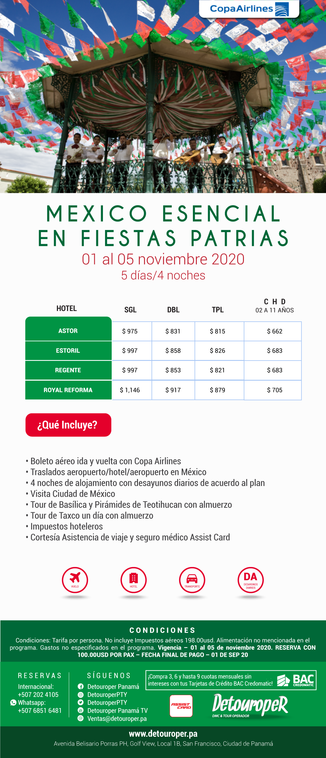MEXICO ESENCIAL EN FIESTAS PATRIAS 01-05 NOV 2020