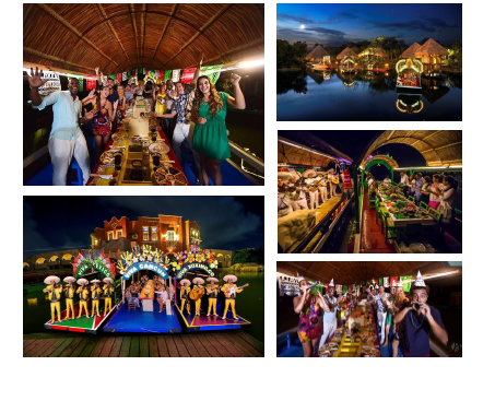 - Servicio de shuttle compartido en horario establecidos. - Viaje redondo Hotel Parque Hotel. - 20 visitantes por trajinera acompañado siempre por un animador. - Kermés mexicana en donde encontrarás juegos, podrás comerte un esquite y bailar al ritmo de la tambora. - Una deliciosa cena con diferentes platillos típicos de nuestro país.